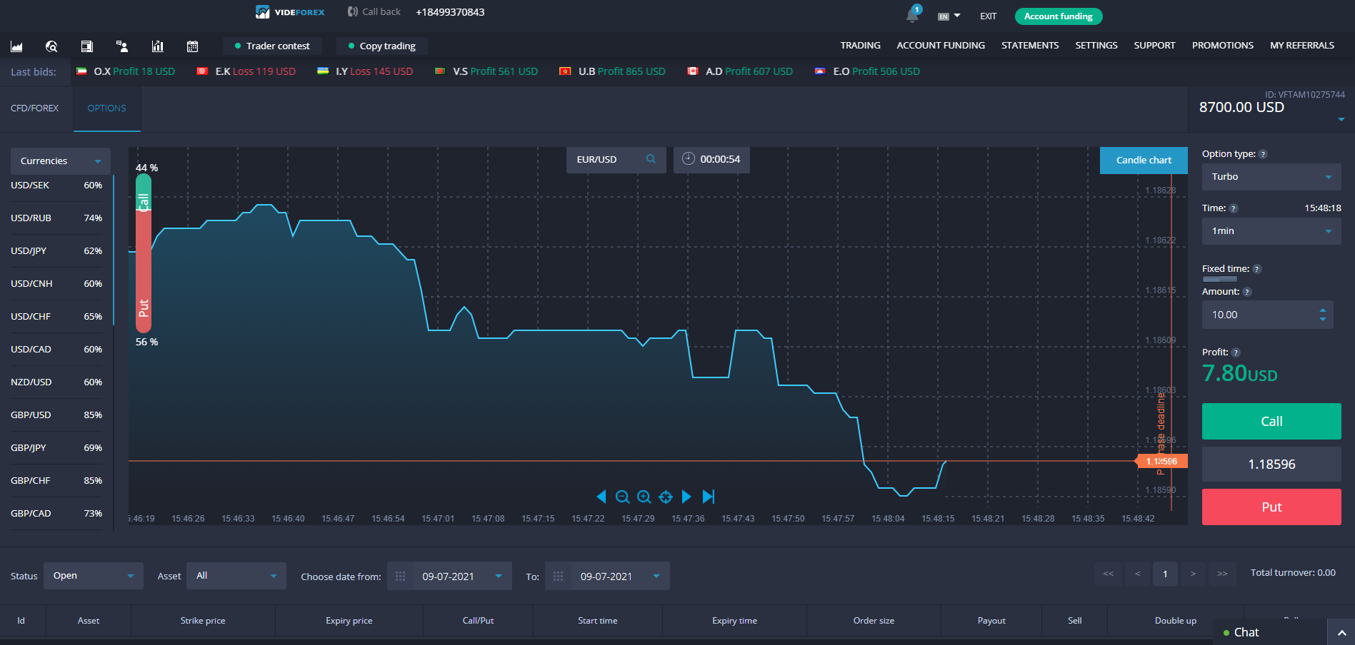 VideForex provides both binary choices and CFD trading in an adaptable, multi-device setting. Users can access the system via web browser, Android APK, or iOS direct web link.